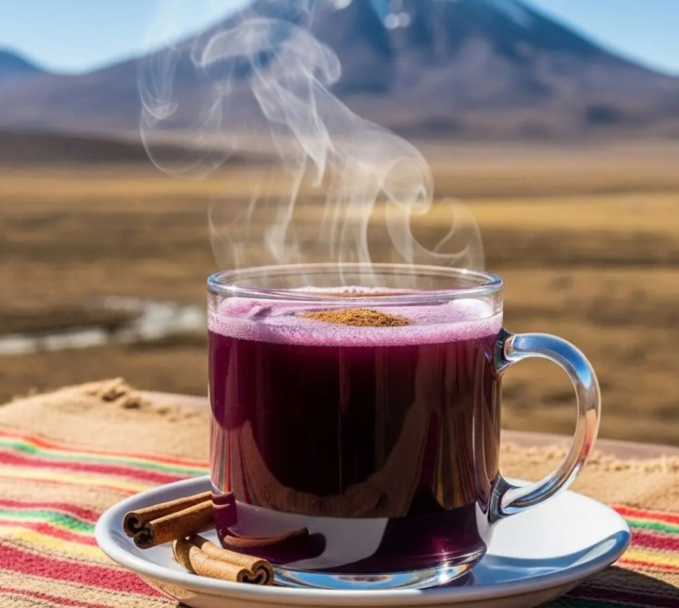 Tradicionalmente se bebe antes del amanecer para resistir el frío del altiplano. Su color violeta intenso lo convierte en una bebida visualmente memorable.