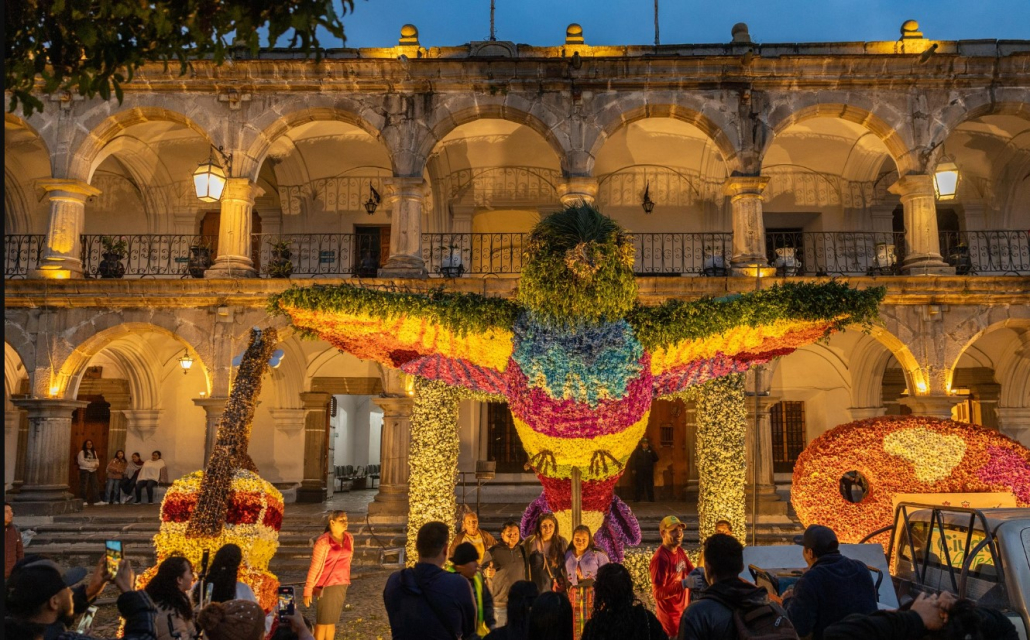 Durante el fin de semana, Antigua se llenó de visitantes que caminaron con cámaras y flores en mano. Calles como la 5a avenida, la Calle del Arco, la Alameda Santa Lucía y los alrededores del Parque Central se convirtieron en los puntos más concurridos. Las fachadas en tonos pastel sirvieron como lienzos para instalaciones monumentales que combinaron técnicas tradicionales con propuestas contemporáneas.