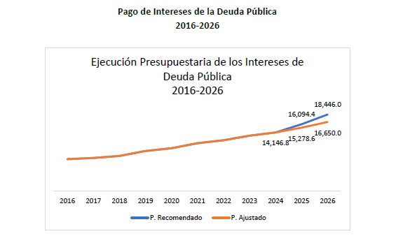 Si bien cada año se está incrementando la adquisición de deuda, al evaluar el comportamiento tendencial de los intereses se observa que tanto para 2025 como para 2026 los montos se encuentran sobre estimados, por lo que, al realizar una estimación de acuerdo con la tendencia de ejecución, se puede estimar que para 2026 se deberían asignar alrededor de Q16,650.0 millones para intereses.