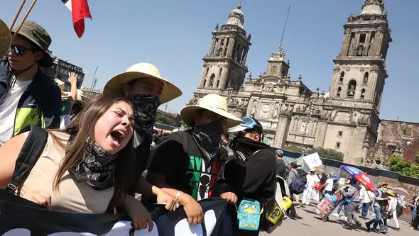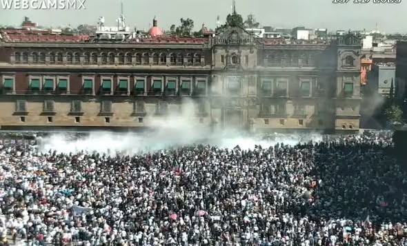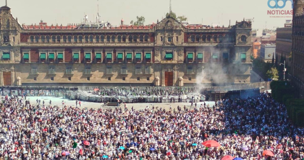 La manifestación avanzó sin incidentes hasta llegar al Zócalo, punto donde un sector de los participantes intentó acercarse al Palacio Nacional. Ahí comenzó la tensión: agentes de seguridad usaron gases lacrimógenos y extintores para dispersar a los asistentes, mientras algunos manifestantes respondieron lanzando objetos y empujando las vallas metálicas que protegían la sede del Ejecutivo.