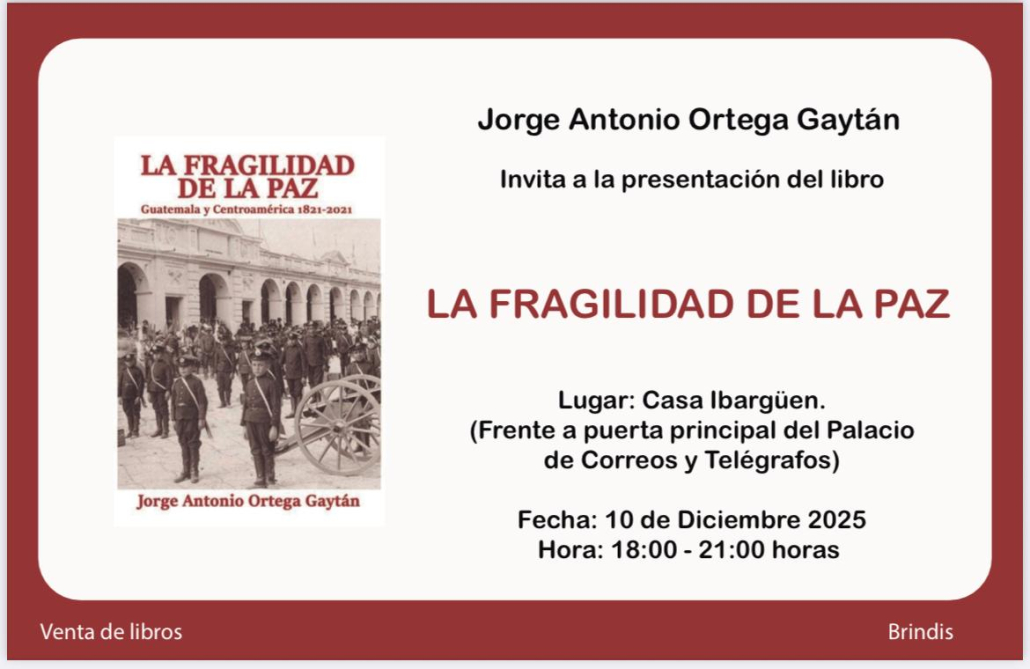 A partir de las seis de la tarde, en la Casa Ibargüen, el doctor Jorge Antonio Ortega Gaytán presenta su libro La fragilidad de la paz, un minucioso estudio histórico sobre diversos conflictos regionales que abarca doscientos años en la historia centroamericana.
