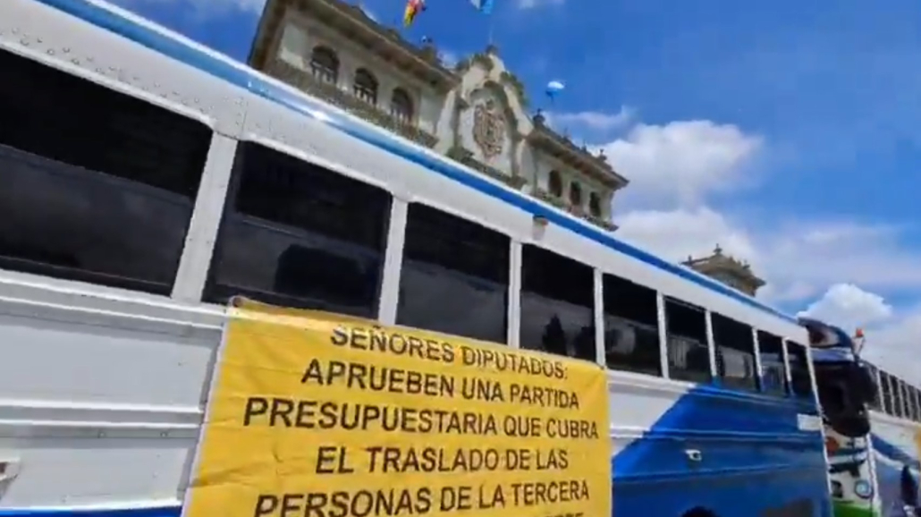 Una manifestación de aproximadamente 120 buses del transporte urbano de Guatemala y Mixco se movilizó este lunes hacia el Centro Histórico, generando congestión y bloqueos en los alrededores del Palacio Nacional de la Cultura y el Congreso de la República.