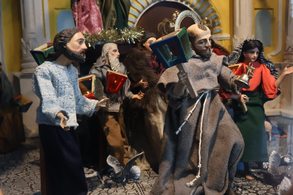 La instalación en Torre Bi recrea una plaza antigüeña, con la imponente fachada del Beaterio de Belén, espacio fundado por el propio Hermano Pedro. El montaje fue desarrollado con sensibilidad histórica y precisión artística por el equipo creador de El Nacimiento.