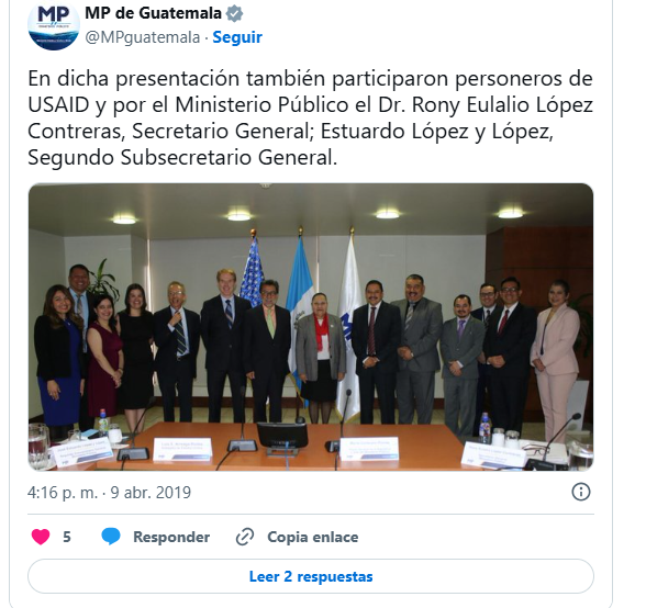 El informe de marras brillaba por las especulaciones y señalamientos contra personas que opinan con su nombre en redes sociales. Esto no le hizo bulla al magistrado López, ex consultor de USAID entre 1997 y 2008, en el programa Estado de Derecho, quien retomó los señalamientos de la UE para tratar de que se investigara al individuo (o equipo) detrás de dicha cuenta, a la que entre otros, se señaló como autor al actual Secretario General del MP, Ángel Pineda, contra quien López guarda una inquina especial.
