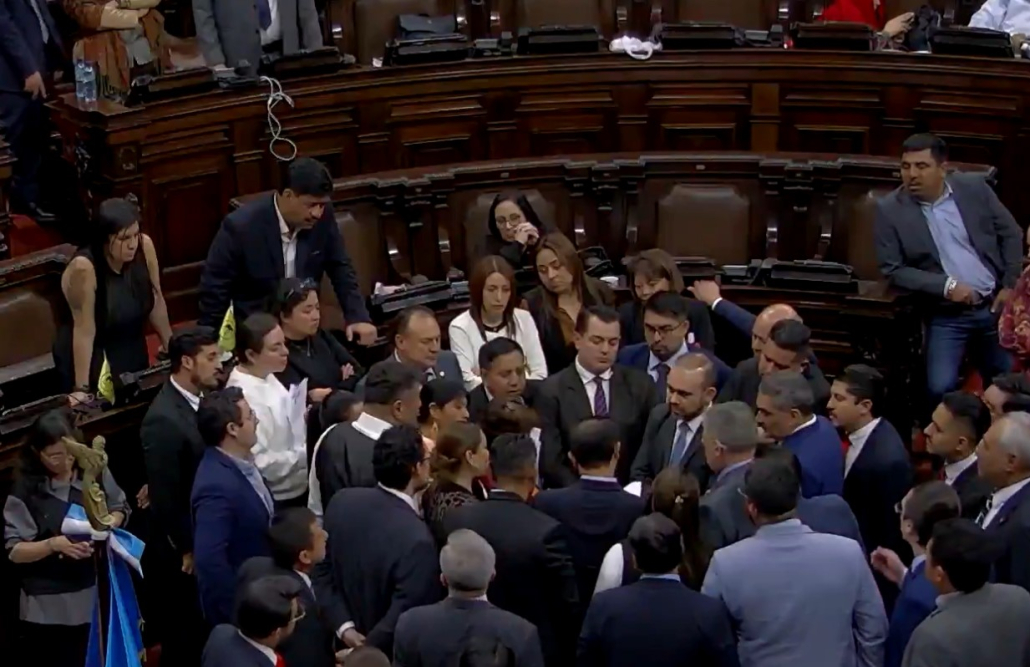 La tensión escaló al punto que la Policía Nacional Civil ingresó al Congreso para intentar garantizar la salida segura de los legisladores, mientras videos mostraban a diputados atrapados dentro del hemiciclo.