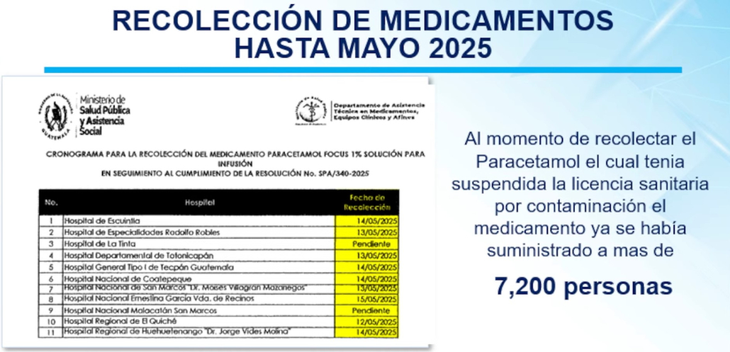 La documentación oficial muestra que Unops entregó al MSPAS medicamentos cuya licencia sanitaria estaba suspendida por contaminación.