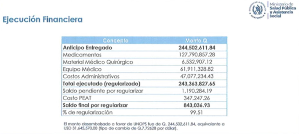 La ejecución financiera refuerza la sospecha: se desembolsaron más de Q244 millones como anticipo, pero el total regularizado apenas mostró un margen mínimo de control y una supervisión casi inexistente.