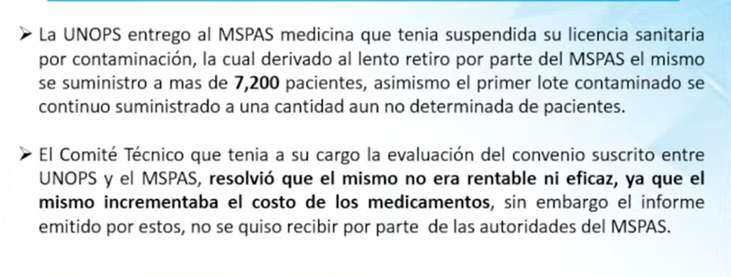 Un comité técnico interno había concluido que el convenio con Unops no era rentable ni eficaz. Sin embargo, Salud rechazó ese informe y continuó operando bajo un esquema que incrementó los costos de medicamentos y multiplicó los gastos administrativos sin justificación técnica.