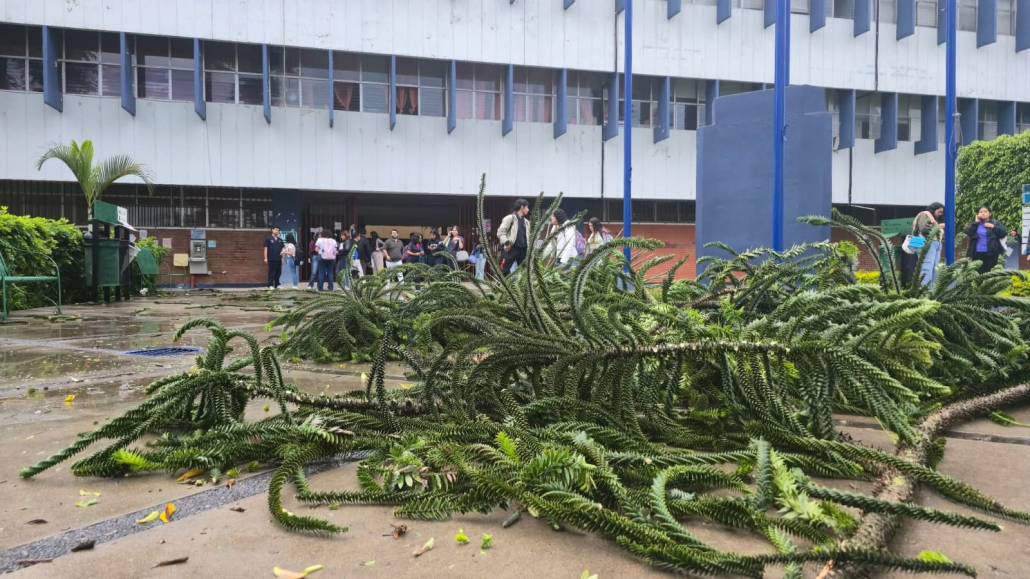 En la zona 11 capitalina, los fuertes vientos afectaron el área del Centro Universitario Metropolitano (CUM), donde se reportaron árboles caídos, mobiliario volando y ventas informales destruidas.