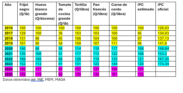 “Lo que en 2010 se compraba con Q100, para el año 2023 requiere Q174.34 para obtener lo mismo.”