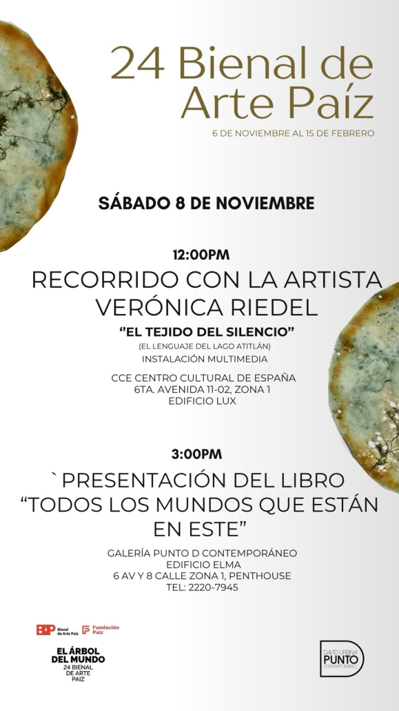 Este sábado se presentan dos eventos imperdibles: la instalación multimedia «El tejido del silencio» y la presentación del libro «Todos los mundos que están en este», ambos de Verónica Riedel, seleccionada de la 24 Bienal de Arte Paiz.
