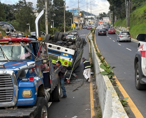 Bus vuelca en Mixco y deja al menos 30 heridos