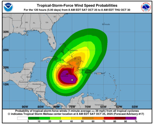 El Centro de Huracanes de EEUU describe a ‘Melissa’ como un huracán «extremadamente peligroso»