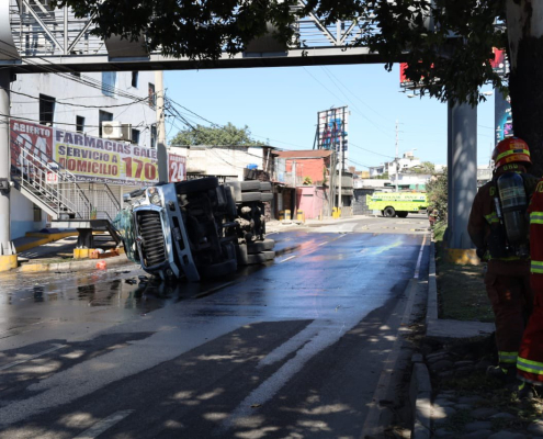 Periférico paralizado tras accidente de cisterna con combustible en zona 2