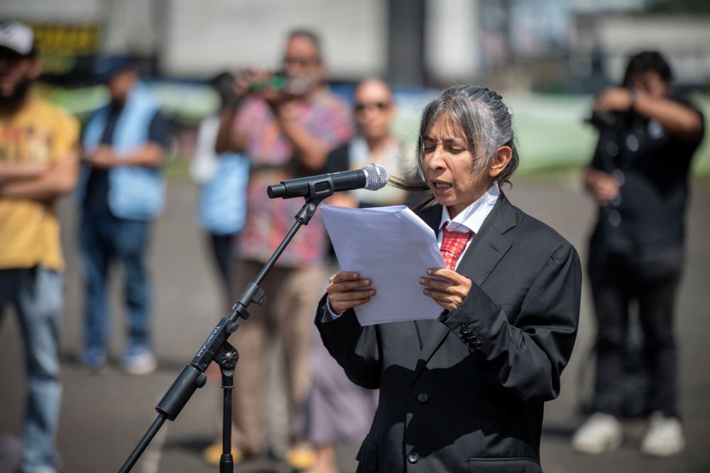 Una mujer mayor se presenta junto a un grupo de curiosos y activistas enfrente a tribunales y se pone un traje de hombre que le queda 5 tallas mas grandes, con ello se presenta como José Rubén Zamora, procesado por lavado de dinero, pero a quien sus fans defienden aduciendo que esto no es cierto.